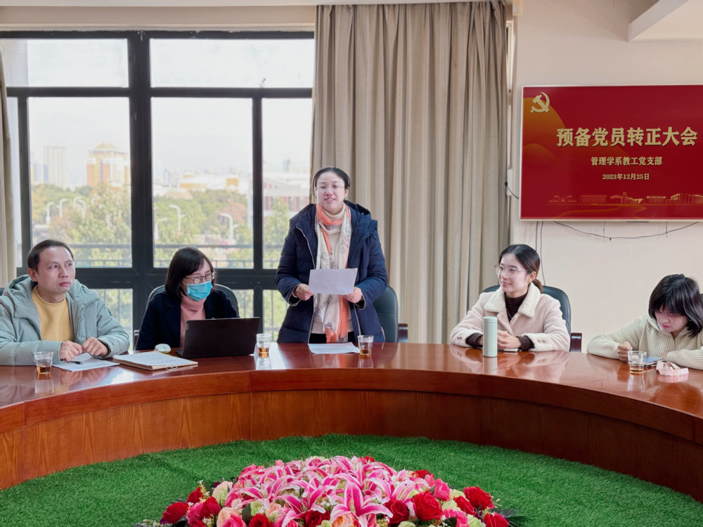 12月25日,我系教工党支部在学院第二会议室召开预备党员转正大会,讨论预备党员李莉同志的转正问题,会议由支部书记欧伟强同志主持。