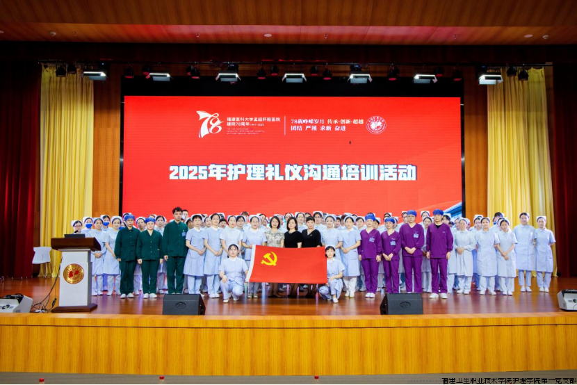 为响应《“健康中国2030”规划纲》“加强医疗人文建设”要求,落实“我为群众办实事”精神,2025年6月12日,福建卫生职业技术学院护理学院第一党支部应福建医科大学孟超肝胆医院邀请,赴该院新院区开展护士礼仪主题培训暨党日活动。孟超肝胆医院副院长杨峰及工会主席冯丹出席了活动开幕式,并在开场讲话中指出:“护士礼仪是医疗服务的‘第一张处方’,关乎患者信任与就医体验。”福建卫生职业技术学院护理学院第一党支部人文教研室党小组组长、人文教研室主任刘菲菲围绕护士工作场景,系统解析护士仪容着装规范、站坐行蹲行为礼仪及临床沟通技巧。