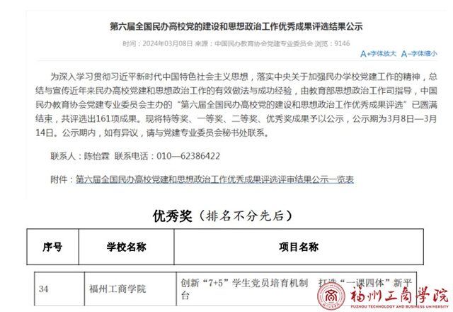 此次评选旨在深入学习贯彻习近平新时代中国特色社会主义思想,落实中央关于加强民办学校党建工作的精神,总结与宣传近年来民办高校党建和思想政治工作的有效做法与成功经验,共评选出161项成果。