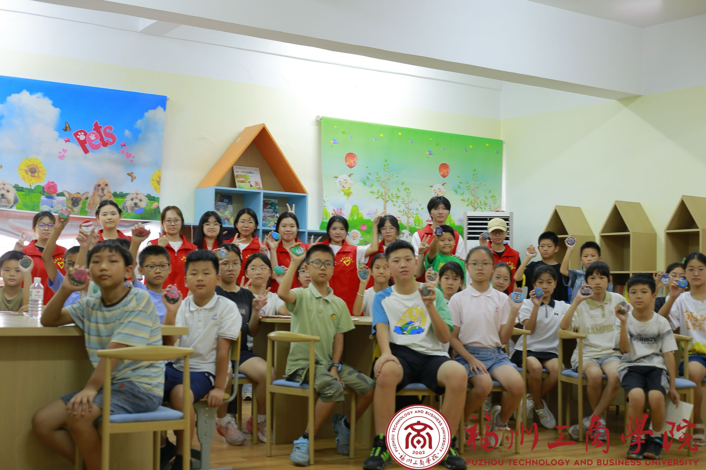 志愿者带来两节艺术课程,志愿者们以“动静双绝”开启艺术启蒙——静态的红砖古厝建筑美学与动态的刣狮非遗表演,在孩子们笔下幻化成《未来西园》的奇思妙想。下午的石绘课堂上,粗糙的鹅卵石变身星空宇宙,这种“化平凡为神奇”的创造力,正是美育赋能乡村振兴的生动诠释。