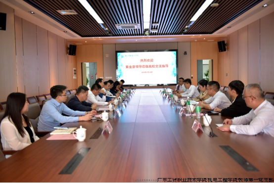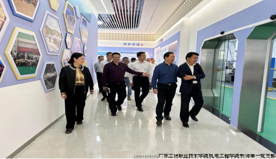 赖伟军一行先后参观了校园环境、机电工程学院等,工作人员详细介绍了学校的发展历程、专业建设、实训基地、办学特色和教学成果等,双方就如何结合学院专业优势助力凤安镇特色产业发展进行了初步交流。