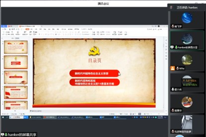 8月18日,先进制造技术学院教工党支部以线上会议形式召开习近平新时代中国特色社会主义思想专题学习会。本次学习会由教工党支部书记刘金彦同志主持,学院党总支副书记、院长戴护民同志主讲。