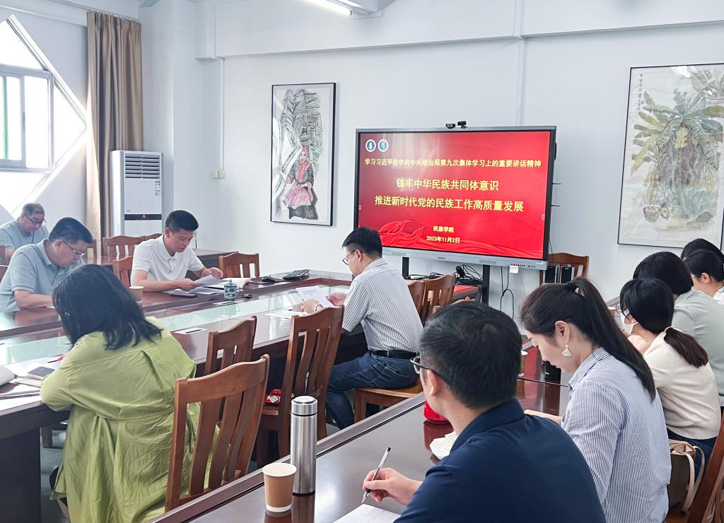 11月2日下午,民族学院党委在东校区第一教学楼1411室召开学院党委理论学习中心组扩大会,深入学习习近平总书记在中共中央政治局第九次集体学习的重要讲话精神。全院教职工参加了会议,会议由学院党委书记黄文浩主持。