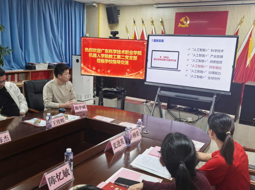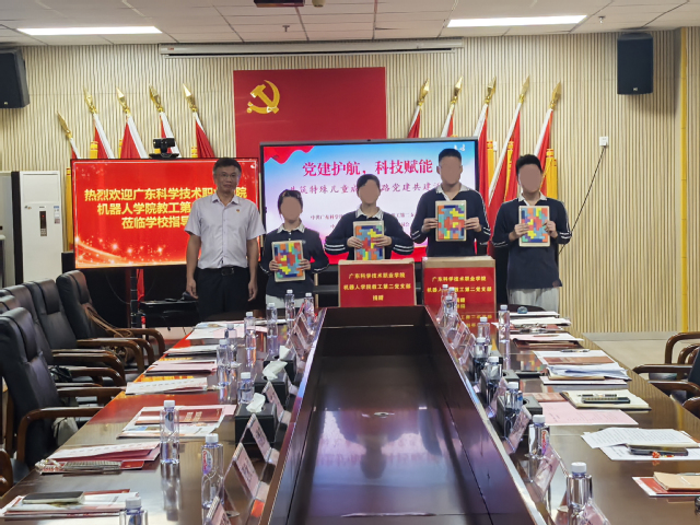 为深入贯彻落实新时代党的建设总要求,以高质量党建引领特殊教育事业高质量发展,12月17日下午,机器人学院教工第二党支部赴珠海市特殊教育学校,与该校第七党支部联合开展“党建护航,科技赋能”党建共联建活动。本次活动旨在通过组织共建、资源共享、科技赋能与爱心帮扶,积极探索“党建+特殊教育+科技赋能”融合发展新路径,共同助力特殊儿童成长之路。活动由珠海市特殊教育学校副校长韩可新主持。机器人学院教工第二党支部书记苏江、副书记陈中威,珠海市特殊教育学校校长陈文、副校长韩可新、第七党支部书记冯慧颖,以及双方党员代表共同参与。