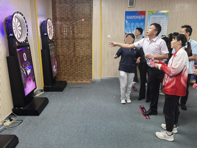与会人员还一同参观了学校飞镖训练功能室,亲身体验飞镖运动,感受特校在特色课程建设与学生潜能开发方面的积极探索。