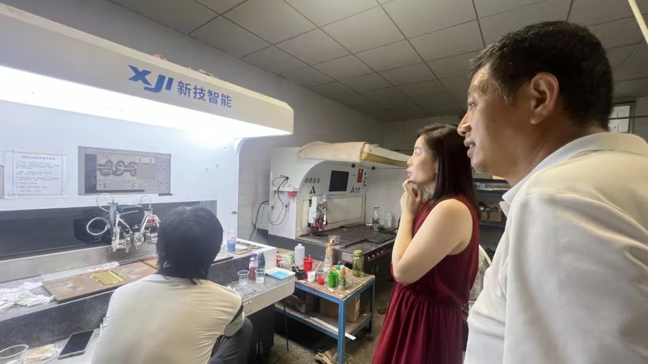 金敬谋表示,希望借助计算机学院高水平专业群的资源和平台,能够更多地开展有价值的合作项目,为学生们提供更多实践项目。对学院人才培养提出中肯的建议,希望把握未来,探索AI设计礼品,提升设计质量与生产效率。随后,他带康玉忠一行参观了公司的联港工业区制作包装盒烤漆生产线、礼品加工成型制作生产线、图像自动识别点漆生产设备及新进智能生产制造设备等。与企业深入交流,达成共识,通过专业群开展多层次产学研合作,为企业提供更多的服务。