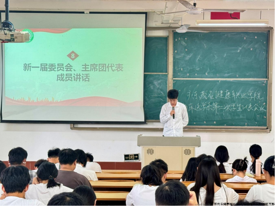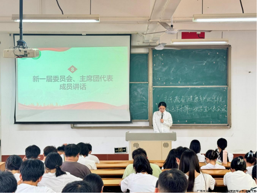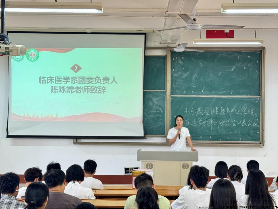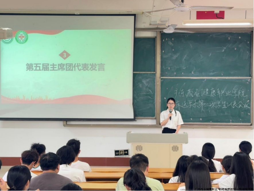 为推进学生组织建设,深化民主管理机制,在广东茂名健康职业学院临床医学系“双带头人”教师党支部书记工作室的具体指导帮助下,临床医学系第二次学生代表大会近日在教学楼D201教室召开。临床医学系团委负责人陈咏嫦、学生会指导老师黄翔、李晓敏及101名学生代表出席本次会议。