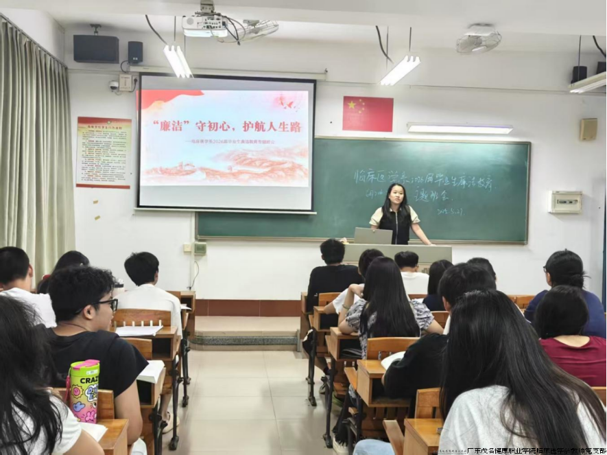 为深入学习贯彻习近平新时代中国特色社会主义思想,紧紧围绕立德树人根本任务,帮助毕业生树立遵法、崇廉、守信的人生观,进一步引导毕业生廉洁修身,系好人生“第一粒扣子”,走好迈向社会的第一步。广东茂名健康职业学院临床医学系以党建引领,在临床医学系教师党支部“匠心铸医魂”工作室和临床医学系学生党支部具体指导下,开展“廉洁修身,迎风起航”为主题的毕业生廉洁教育系列活动。
