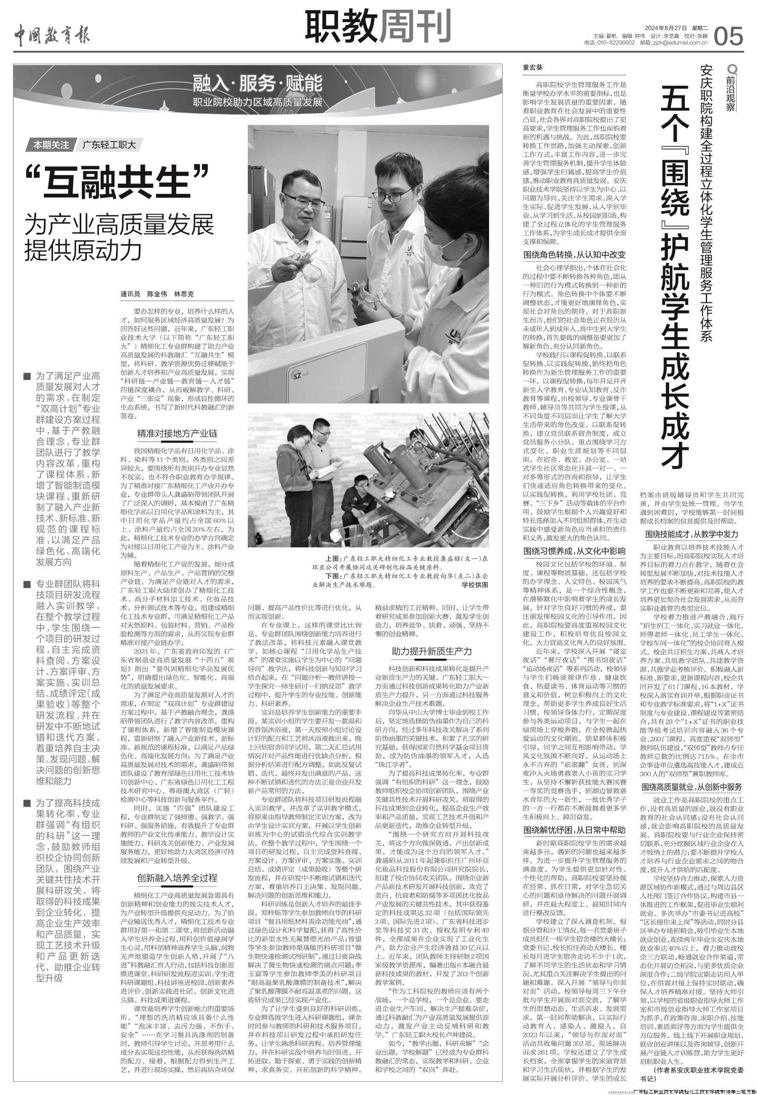 融入 服务 赋能 职业院校助力区域高质量发展 本期关注 广东轻工职大