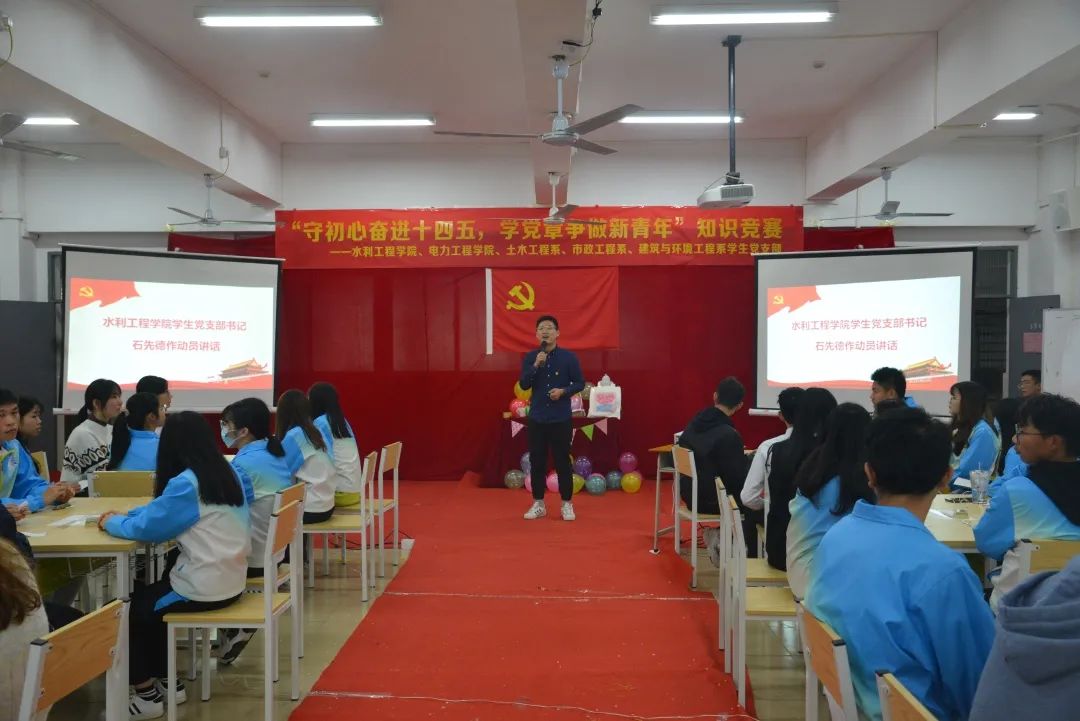 2020年12月24日14:30时,市政工程系学生党支部联合水利工程学院学生党支部、电力工程学院学生党支部、土木工程系学生党支部和建筑与环境工程系学生党支部在从化校区水利楼A13-310举办“守初心奋进十四五,学党章争做新青年”五系联谊党章知识竞赛。出席本次活动的有水利工程学院学生党支部书记石先德、电力工程学院学生党支部书记余青青,以及五系学生党员,积极分子等。