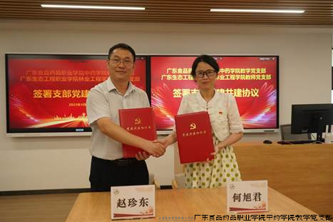 2024年4月25日下午,广东食品药品职业学院中药学院教学党支部与广东生态工程职业学院林业工程学院教师党支部(均入选第四批全国党建工作样板支部培育创建单位)党建共建签约协议在我校标本馆智慧课室举行。广东生态工程职业学院林业工程学院党总支副书记周鹏、副院长杨晓朱、教师党支部书记何旭君等一行10人出席本次签约活动。中药学院党总支书记利健文、副院长张雷红、教学党支部书记赵珍东、全国中药特色技术传承人梁永枢及中药学院教学党支部全体党员参加此次签约活动。