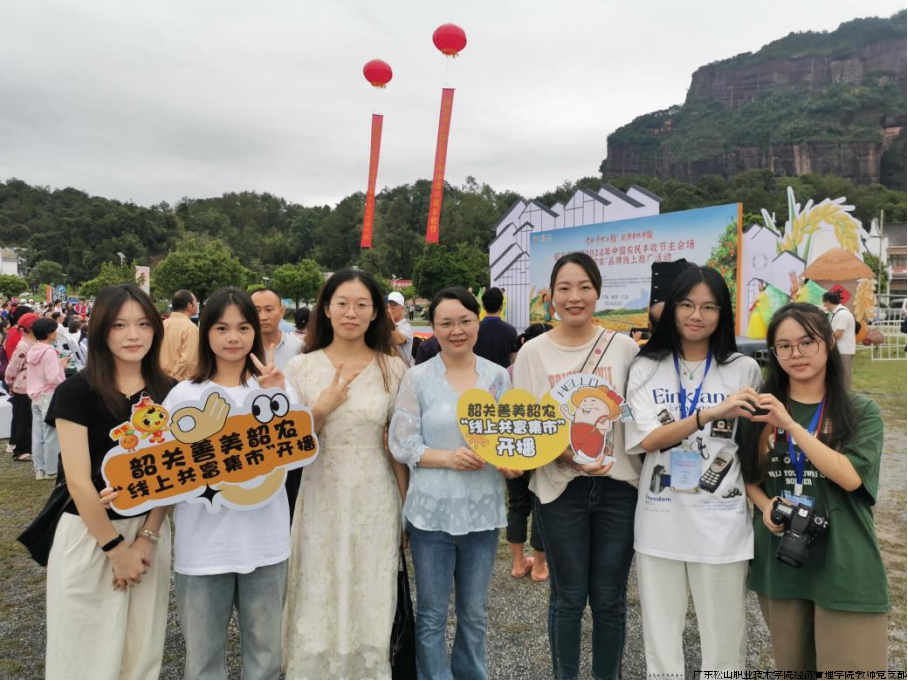 9月22日秋分当天,韶关市庆祝2024年中国农民丰收节主会场暨“善美韶农”品牌线上推广活动在仁化县丹霞山生态广场举行。经济管理学院教师党支部副书记李素琴带队,与文琪、莫炜、马青原等教师,以及农村电子商务专业、电子商务专业和人力资源管理专业6名学生组成的“直播小分队”,踏上了这场别开生面的直播实践之旅,为“善美韶农”品牌注入松山力量。