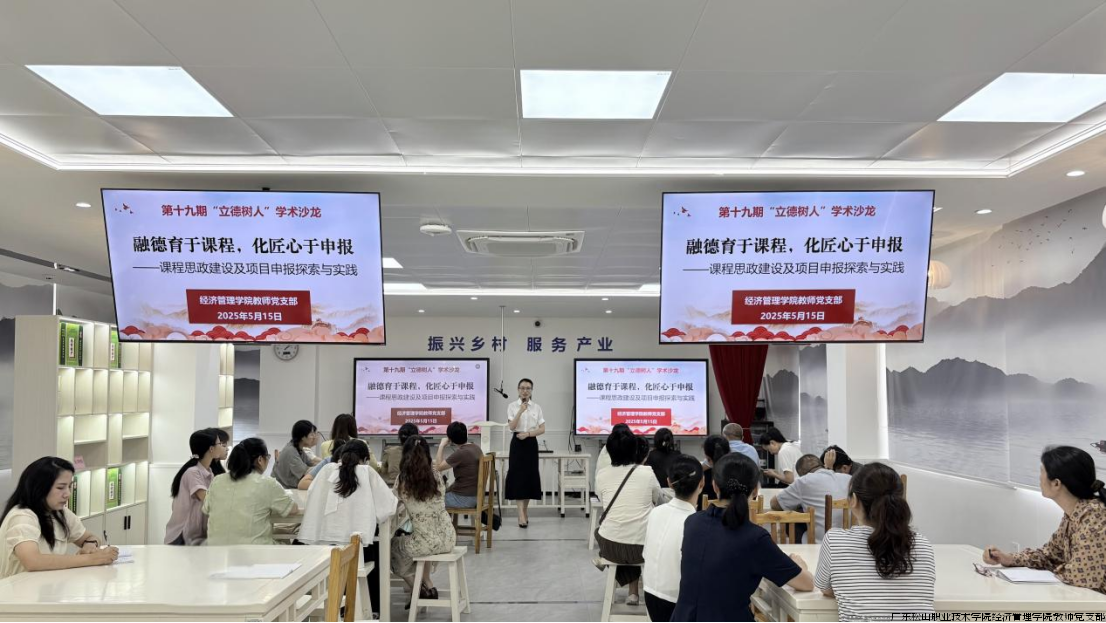 为推动课程思政与专业教育深度融合,提升教师思政育人能力与科研项目申报水平,5月15日下午,经济管理学院教师党支部在浈江校区数教基地104举行第十九期“立德树人”学术沙龙活动,学院副院长、支部书记李红利以“融德育于课程,化匠心于申报”为题,围绕课程思政建设及项目申报探索与实践进行分享。