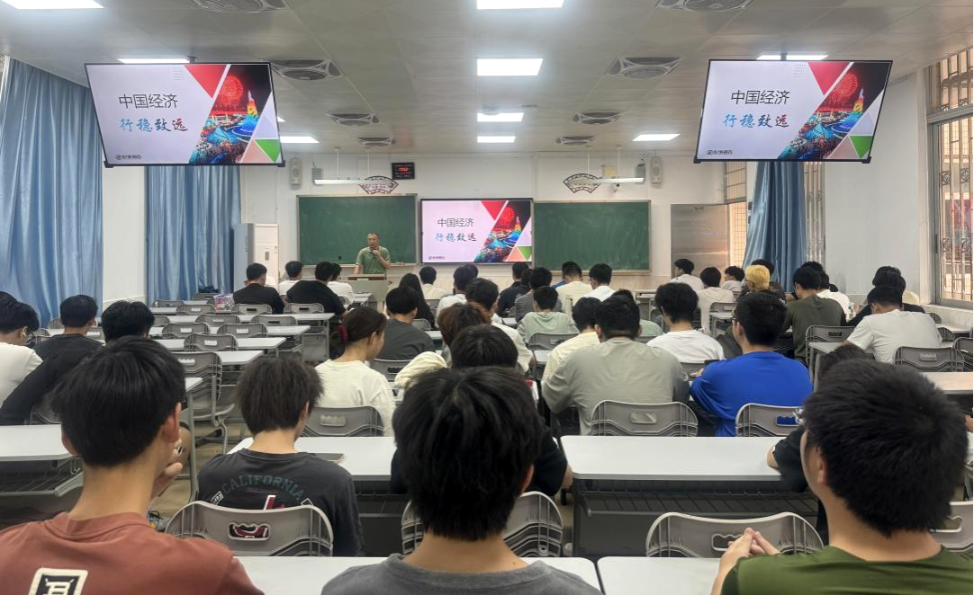 “2024年我国在全球的创新指数排名跃升至第11位,是拥有全球百强科技创新集群最多的国家。”赵保宁以一组亮眼的经济数据为切入点,从“发展信心从哪来”破题。在授课过程中,通过引入2024年全国粮食产量、全国快递业务量和全国铁路客运人次等一个个“首次突破”案例,如同一个个生动的经济切片,让同学们直观感受中国经济的旺盛活力和巨大潜力。“这些看似抽象的经济指标,实则与每个人的生活紧密相连。”赵保宁的讲述深入浅出,将宏观经济图景转化为具象的生活场景,鼓励同学们要保持“家事国事天下事,事事关心”的敏锐视角,以“使命在肩,奋斗有我”的担当精神,主动解锁时代机遇,用青春力量书写属于“强国一代”的华章。