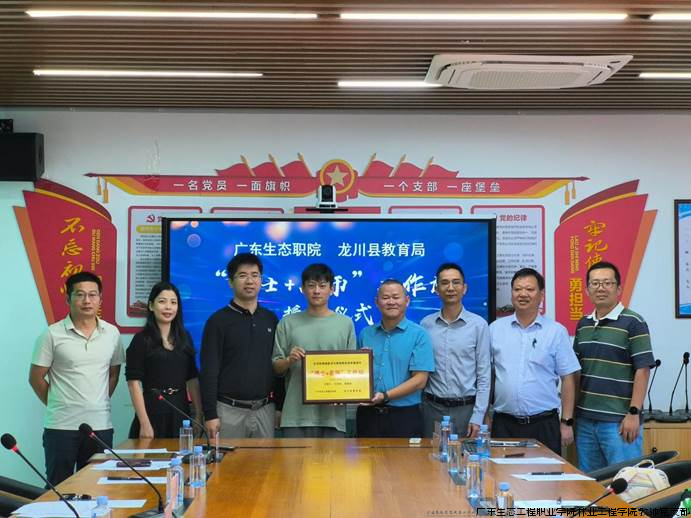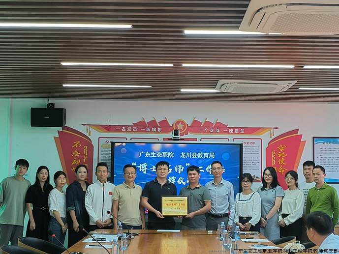 为进一步做好全方位、全口径、融入式基础教育高质量发展结对帮扶工作。11月7日,广东生态工程职业学院与龙川县教育局“博士+名师”工作站授牌仪式在办公楼501举行。龙川县教师发展中心广生态帮扶专班负责人谢意生、林业工程学院党总支副书记周鹏、林业工程学院张伟博士、科研与校企合作管理中心副主任吴世军、经济贸易学院副书记朱幼恩出席授牌仪式,会议由林业工程学院教师党支部车显荣博士主持。
