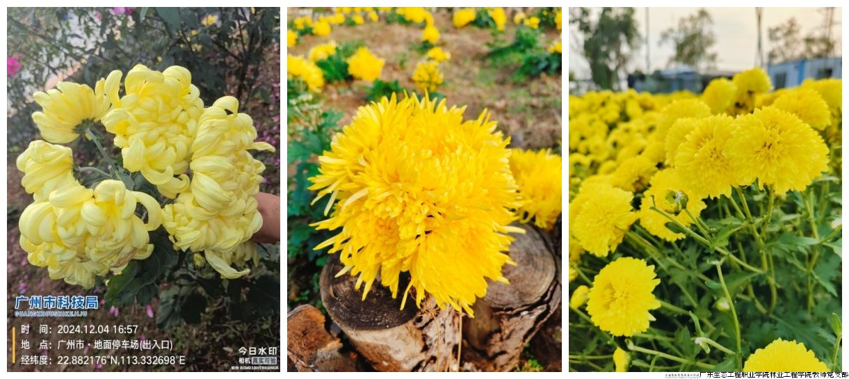 2024年12月,广东生态工程职业学院林业工程学院教师党支部何旭君、谢腾飞同志通过技术帮扶,广州南沙、梅州兴宁种植基地迎来了良种菊花的大丰收。