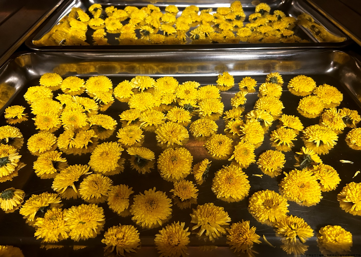 团队示范推广的南方食用菊有三个品种,分别是增城蜜菊、莲菊、金丝皇菊,它们各具特色,在市场上均有良好的应用前景。目前,两个示范基地的菊花竞相绽放,团队的优质种苗繁育及栽培管理技术对基地菊花种植起了关键作用,实现菊花种植的优质高产,体现了支部党员作为农村科技特派员的技术帮扶价值,并对企业的采收加工进行了悉心指导。