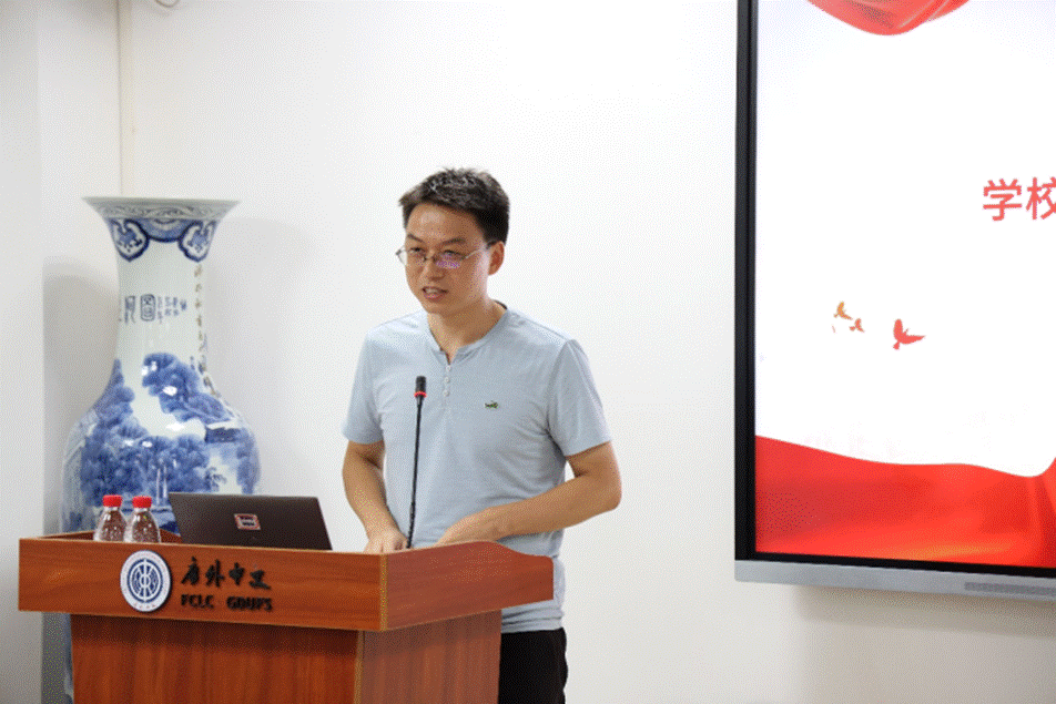 2024年7月1日,为庆祝中国共产党成立103周年,贯彻落实党的二十大精神和习近平总书记系列重要讲话精神,落实全面从严治党主体责任,加强党建引领,深入推进基层党建工作,广东外语外贸大学中文学院党委举行中文学院第三季度党支部书记例会暨中华文化国际传播全国样板支部建设工作推进会。校党委组织部王斌科长、中文学院党委书记谢秀兰、党委副书记兼中华文化国际传播党支部书记吴俊峰及我院教师和学生党支部书记、支部委员、中文学院融媒体中心成员出席会议。