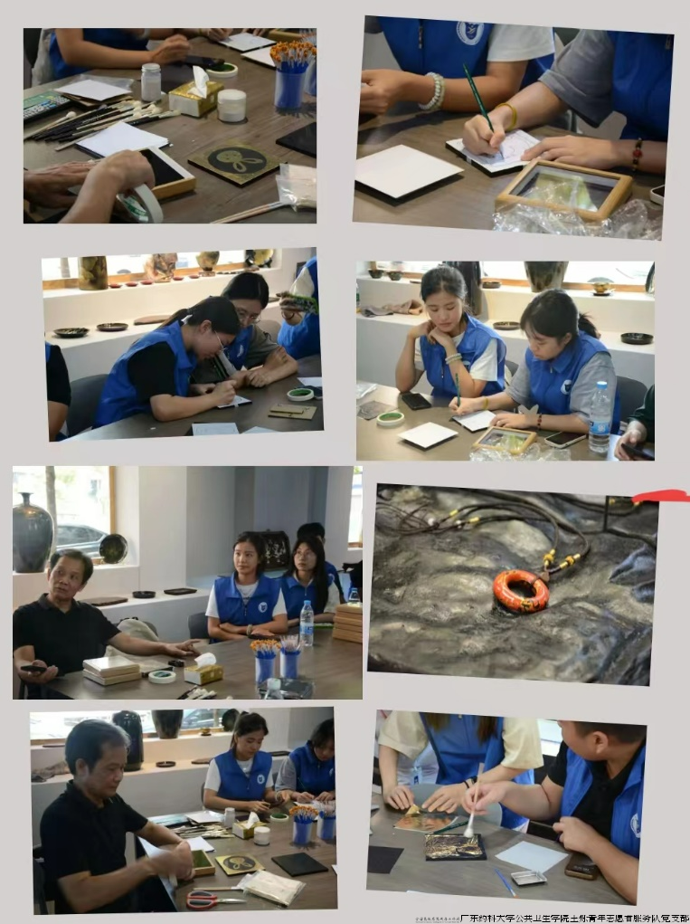 近年来,白坭镇以其深厚的文化底蕴,致力于打造“漆彩耀西江”这一文创品牌。这里不仅挖掘和传承了八千年的传统漆艺文化,更成为了文创产业的新兴聚集地。广东药科大学公共卫生学院“泽心润康”百千万工程突击队成员们积极参与到漆艺活动中,其目的不仅仅是为了学习这门古老的手艺,更是希望通过自己的参与和努力,为白坭镇的文旅宣传贡献力量。
