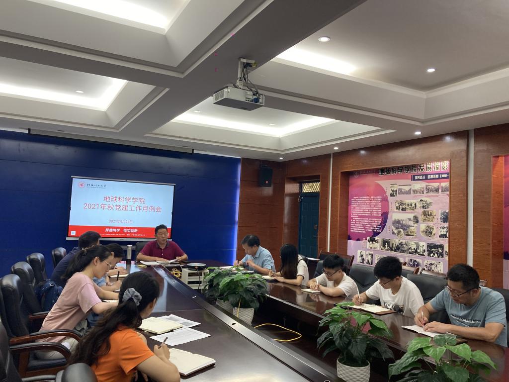 2021年9月24日下午,学院在逸夫楼01215会议室召开2021年秋季学期党建工作月例会。会议由学院党委书记曹文献主持,各党支部书记、支委参加会议。