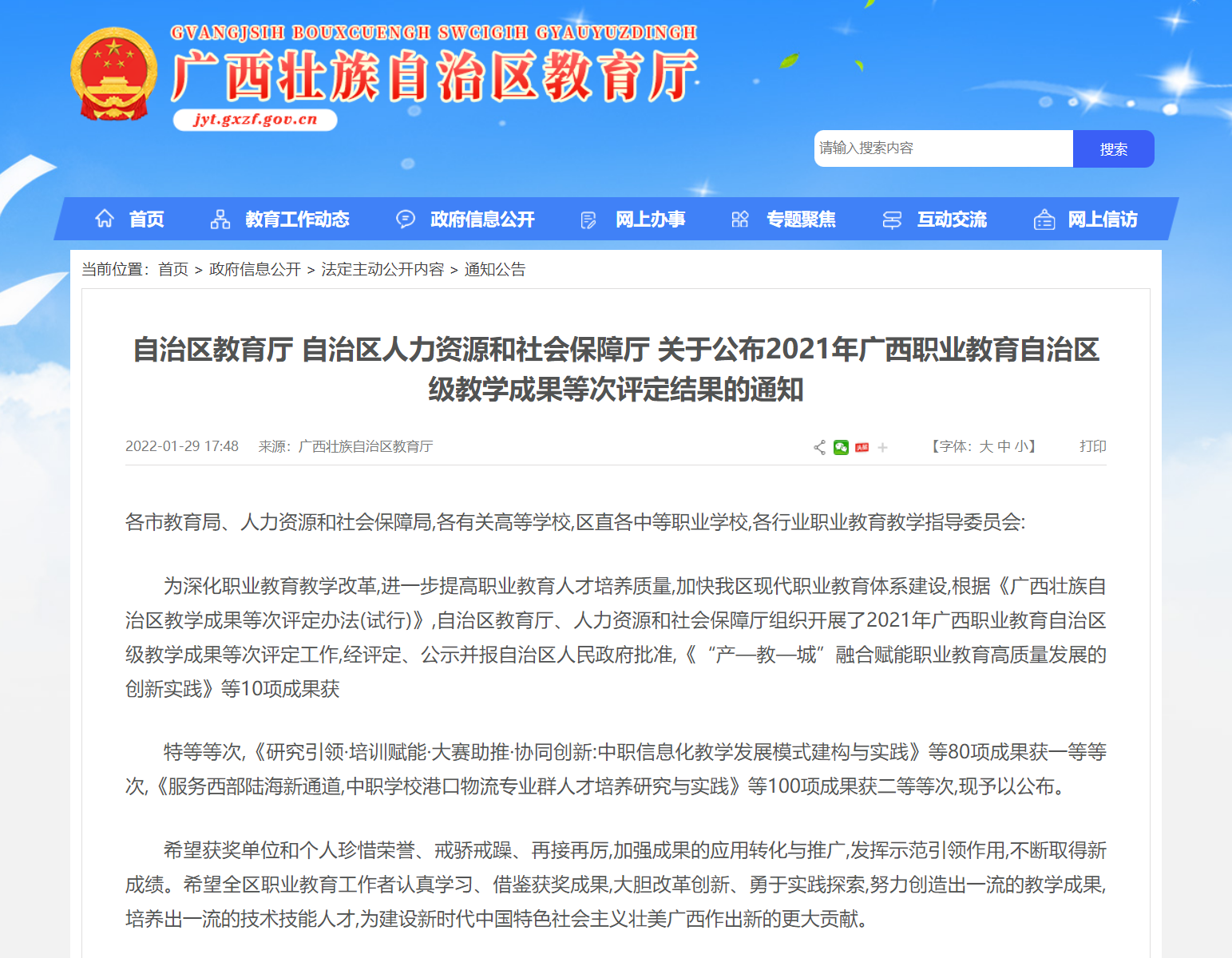 近日,自治区教育厅、人力资源和社会保障厅公布了2021年广西职业教育自治区级教学成果等次评定结果,经评定、公示并报自治区人民政府批准,全区共有10项成果获特等奖,80项成果获一等奖,100项成果获二等奖。我院副院长、教工支部书记梁毅娟老师团队的教学成果《基于中关村软件园平台的校企协同培养智慧电力“数字工匠”人才的探索与实践》荣获二等奖。