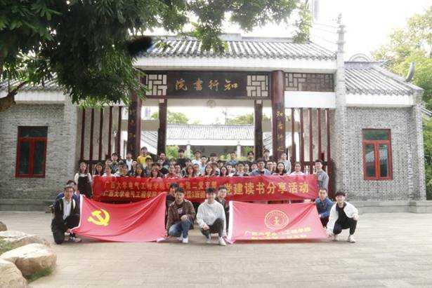 为进一步加深支部党员的精神内涵,提高党员的思想素质和党性觉悟,广西大学电气研究生第二党支部联合电气22级8班团支部于2023年4月25日星期二下午在劝学岛举行了读书分享的党日活动。此次活动邀请了五位同志分享他们最喜欢的一本书,分别为《习近平的七年知青岁月》、《活着》、《红岩》、《悉达多》和《苦难辉煌》。