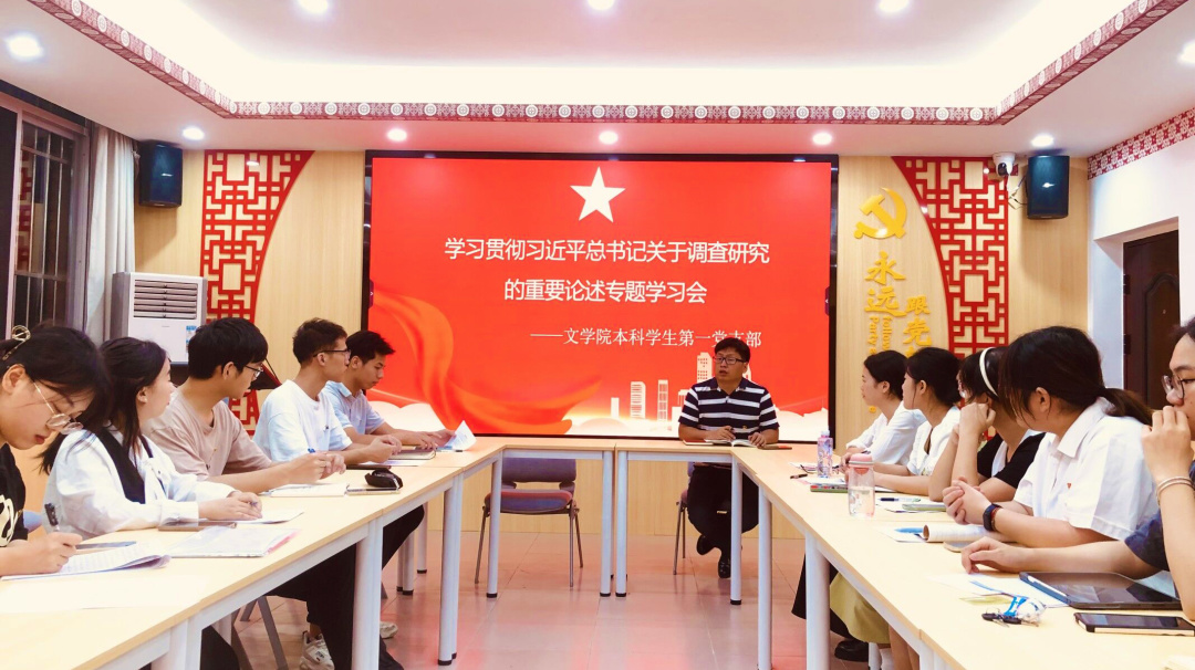 为深入学习贯彻习近平新时代中国特色社会主义思想,全面贯彻落实党的二十大精神,教育党员站稳人民立场,强化宗旨意识,深刻领悟调查研究的重大意义,6月2日晚,文学院本科学生第一党支部在红楼107室开展学习贯彻习近平总书记关于调查研究的重要论述专题学习会。支部书记陈爱中、支部党员与会,会议由组织委员覃志林主持。