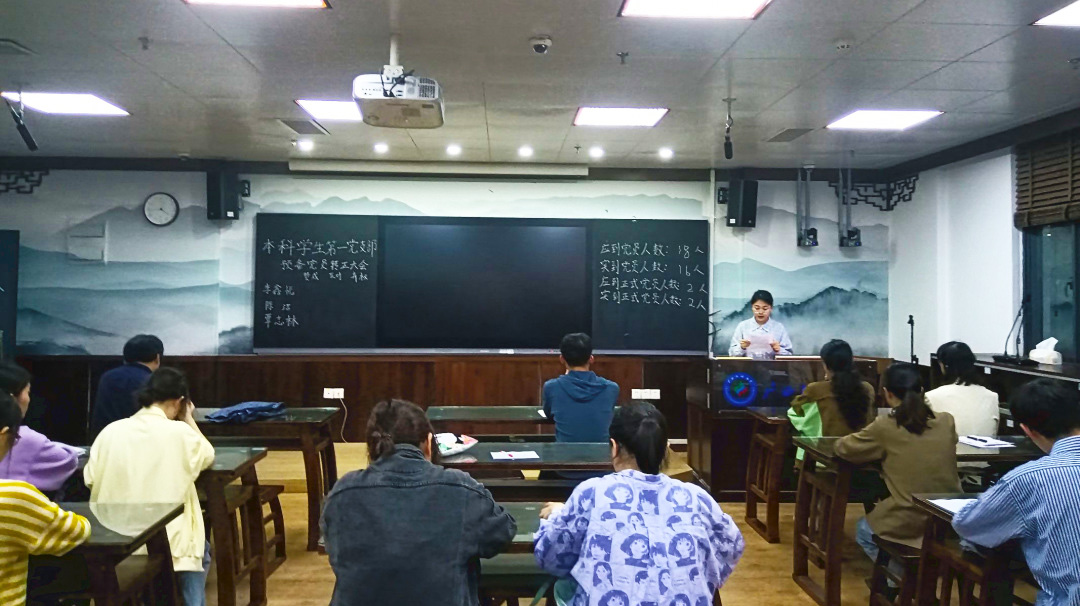 12月17日,文学院本科学生第一党支部在博文楼一教一梯召开预备党员接收大会。会议由组织委员覃志林主持,支部书记陈爱中、支部党员同志及发展对象参加会议。大会同意接收贝玉堂、龙柳妃、周小淇、廖晴、潘缘五名同志为预备党员。