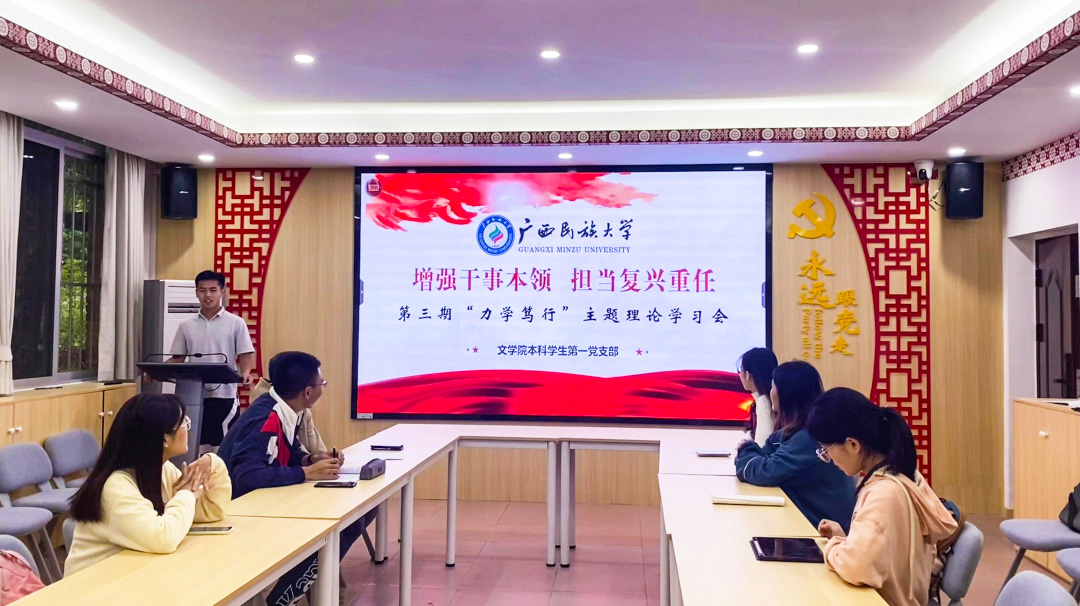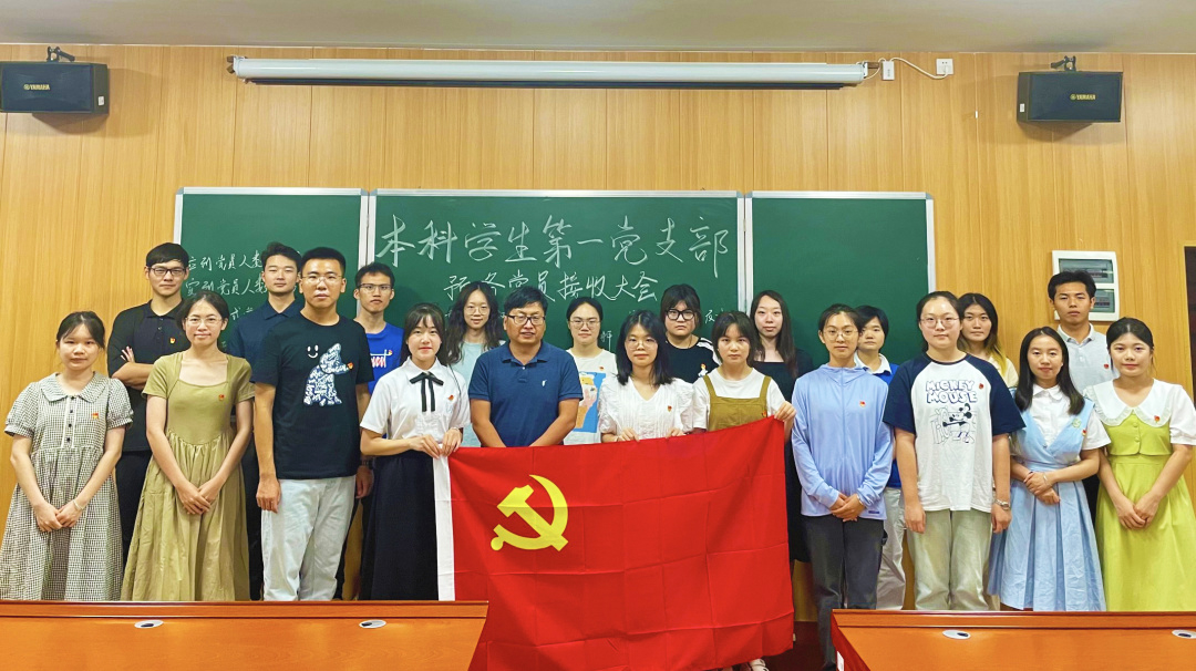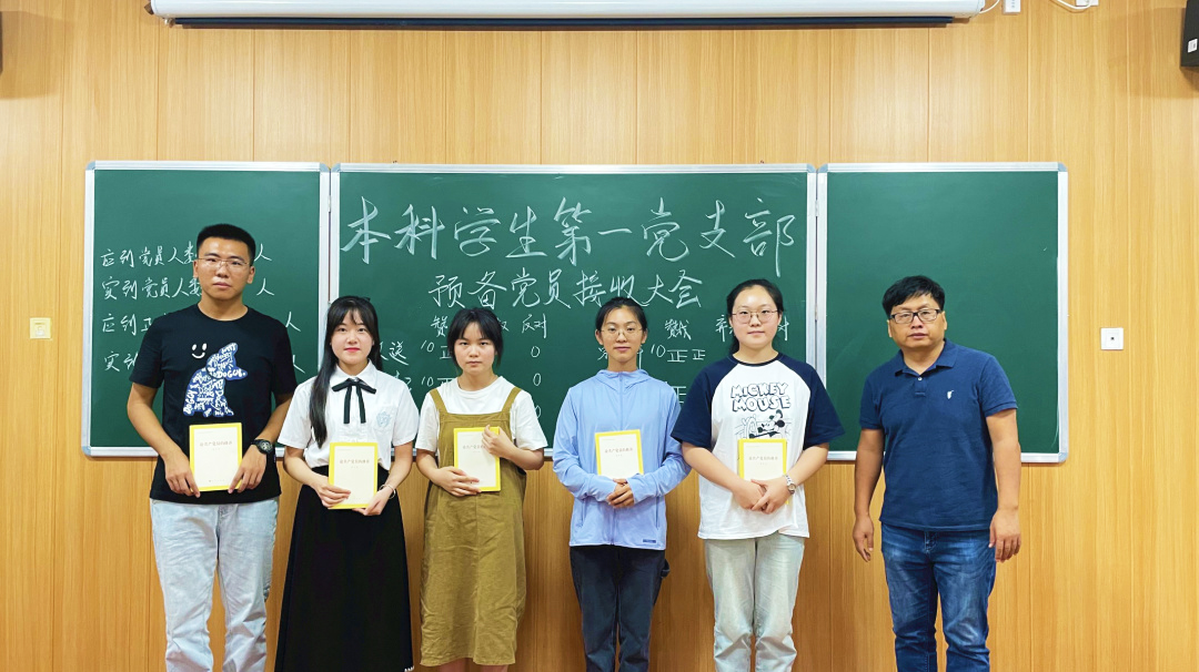 6月5日,文学院本科学生第一党支部在博文楼一教一梯召开预备党员接收大会。会议由组织委员覃志林主持,支部书记陈爱中、支部党员同志及发展对象参加会议。大会同意接收王枚送、李凤起、江素素、宋明轩、蒙孔堃五名同志为预备党员。会议还举行了赠书仪式、佩戴党徽仪式以及入党宣誓。