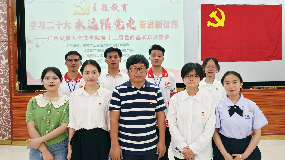 5月20日,文学院在学友楼105教室举办第十二届党的基本知识竞赛,此次竞赛的主题是 “学习二十大,永远跟党走,奋进新征程”。文学院党委书记陆喜培,党委副书记范潇潇,团委书记卢柳媚及文学院教授、本科学生第一党支部书记陈爱中,辅导员石多、高欣言、陈逾杰担任大赛评委,全体党员同志到场观看比赛。经过激烈角逐,文学院本科学生第一党支部在竞赛中荣获二等奖。