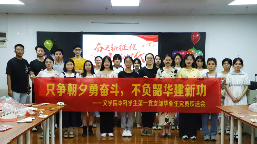 6月9日,文学院本科学生第一党支部在文科综合实训大楼1102室举行“只争朝夕勇奋斗,不负韶华建新功”毕业生党员欢送会。支部书记陈爱中、支部全体党员与会,会议由组织委员覃志林主持。欢送会旨在全面贯彻落实党的二十大精神,以实际行动打造支部的“家”文化精神,营造温馨的组织氛围,打造“走进一支,你以一支为荣;走出一支,一支以你为荣”的良好团队精神风貌,建设“支部之家”。