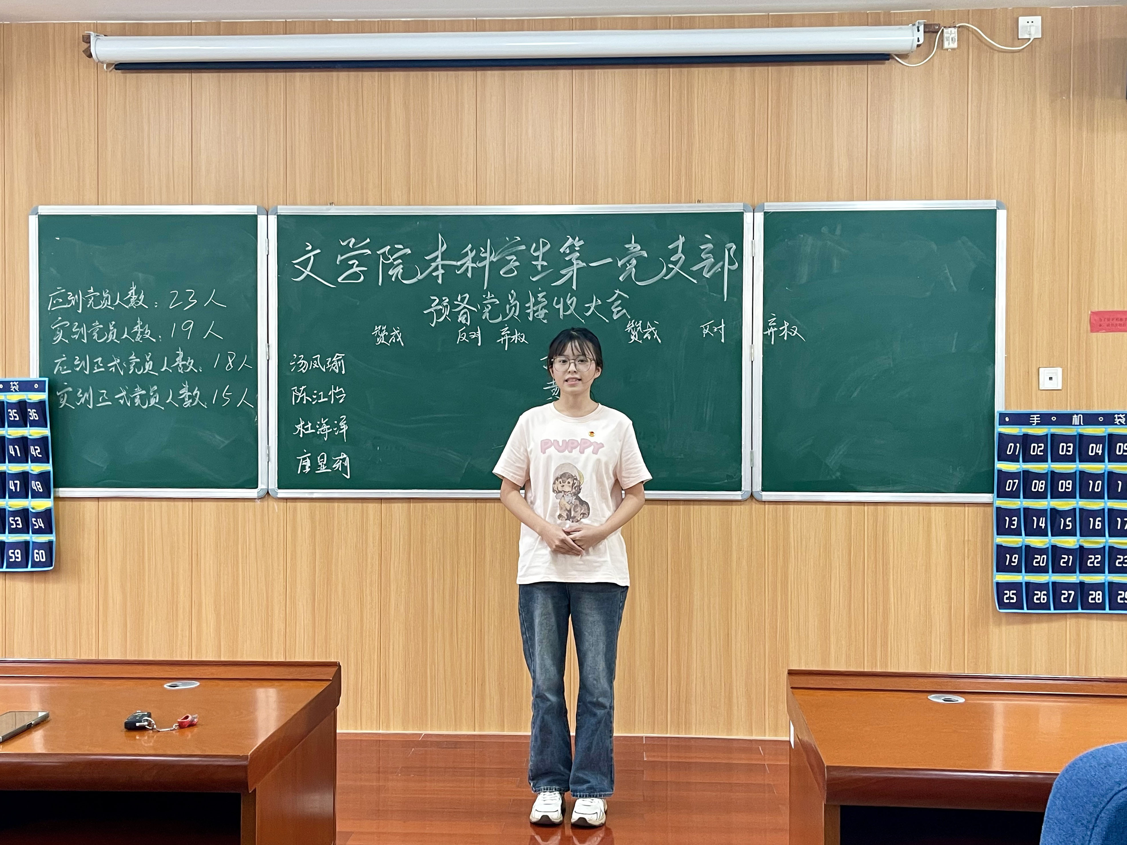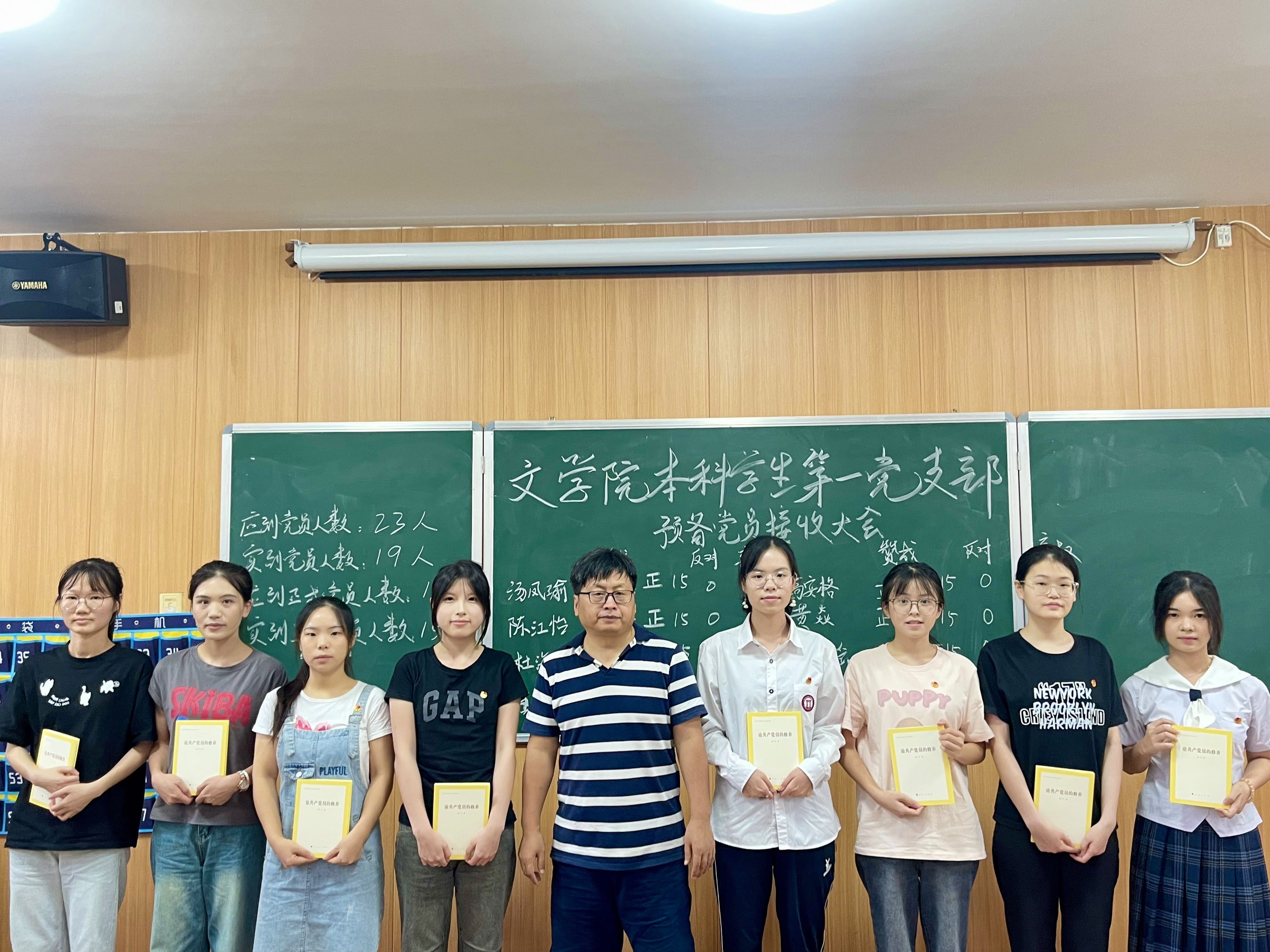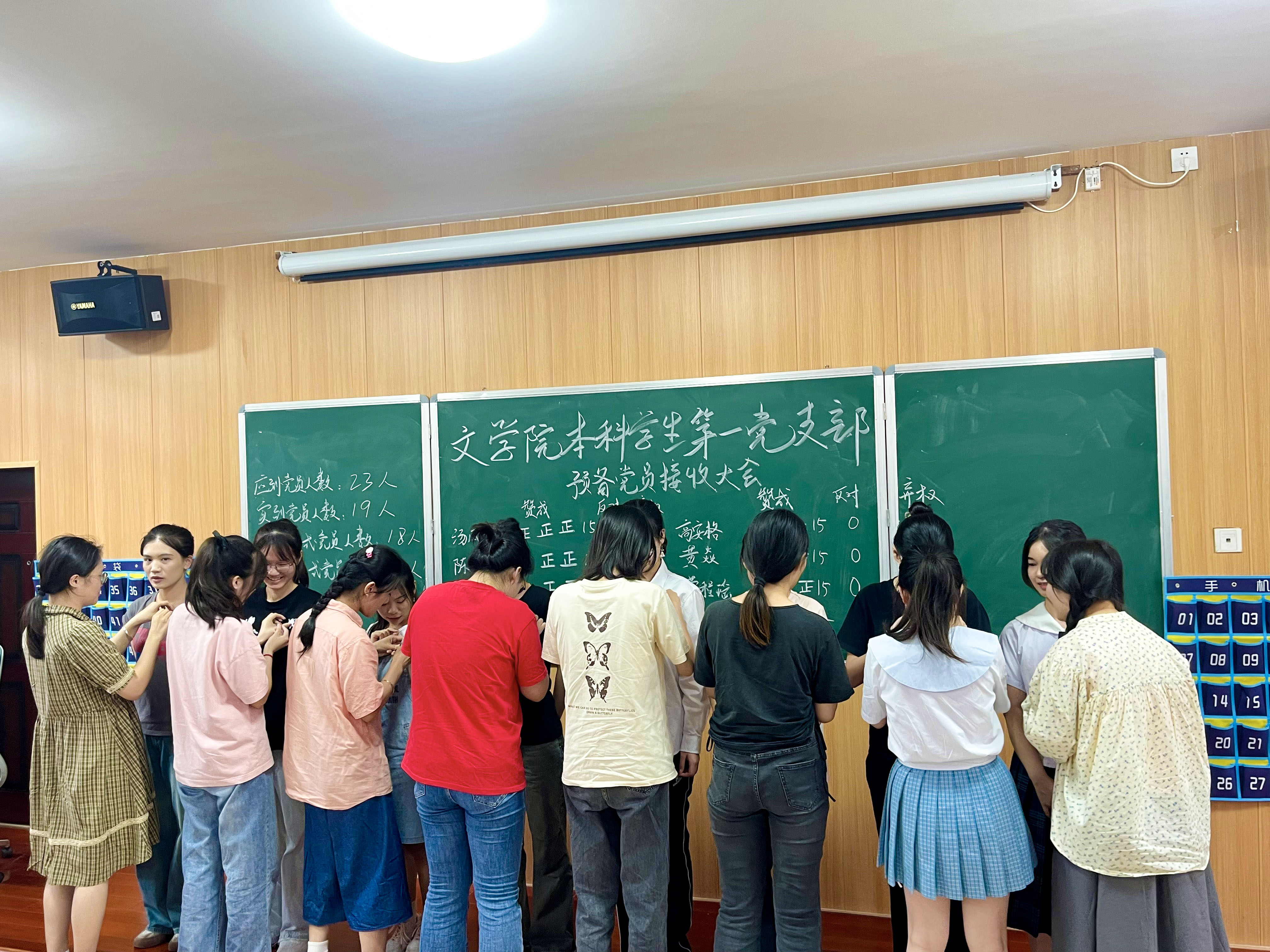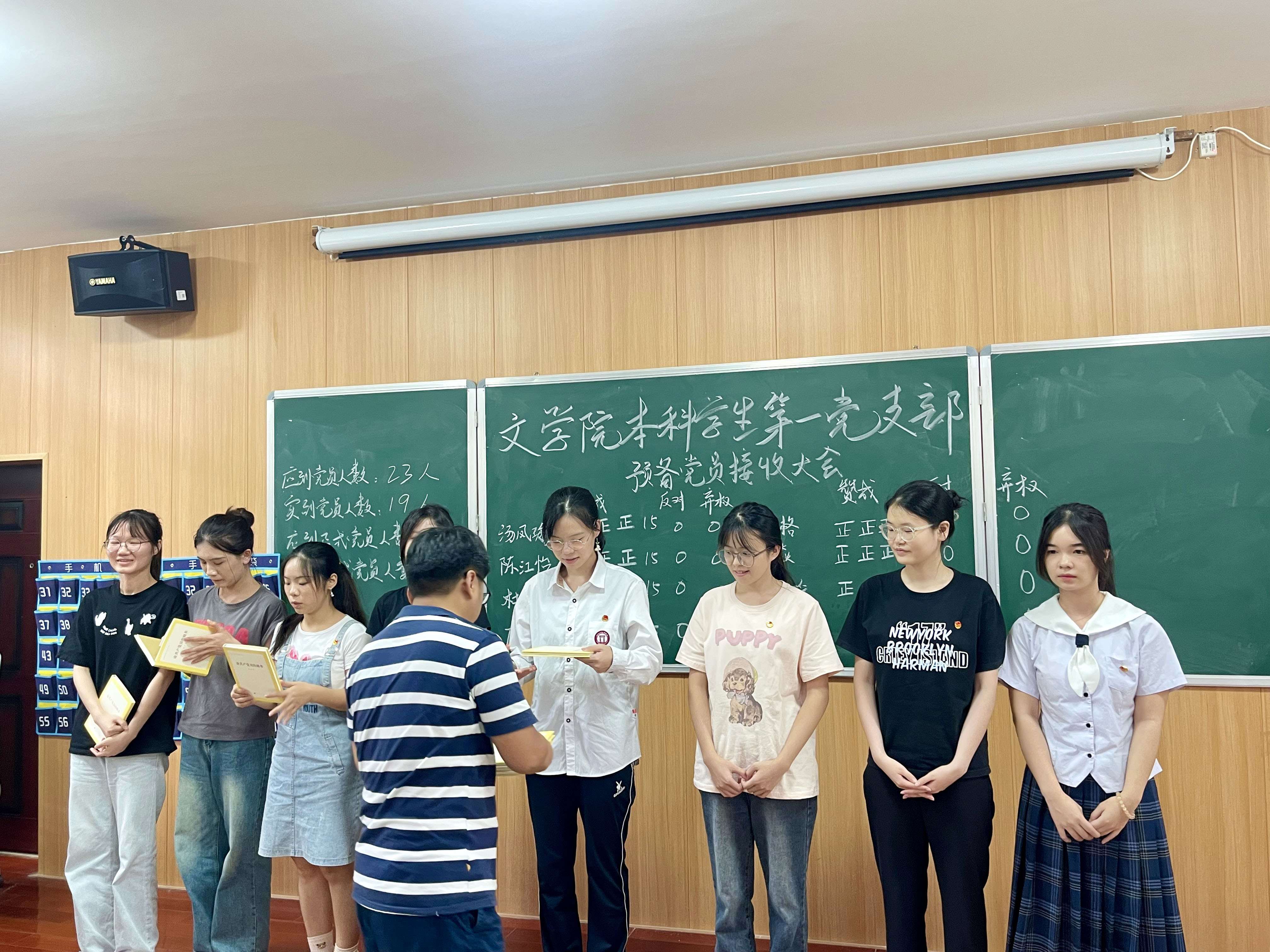 为进一步加强党支部凝聚力和战斗力,壮大党员队伍,落实党员发展计划,6月22日下午,文学院本科学生第一党支部在博文楼一教一梯召开预备党员接收大会暨支部委员改选大会。会议由组织委员覃志林主持,支部书记陈爱中、支部党员同志及发展对象参加会议。