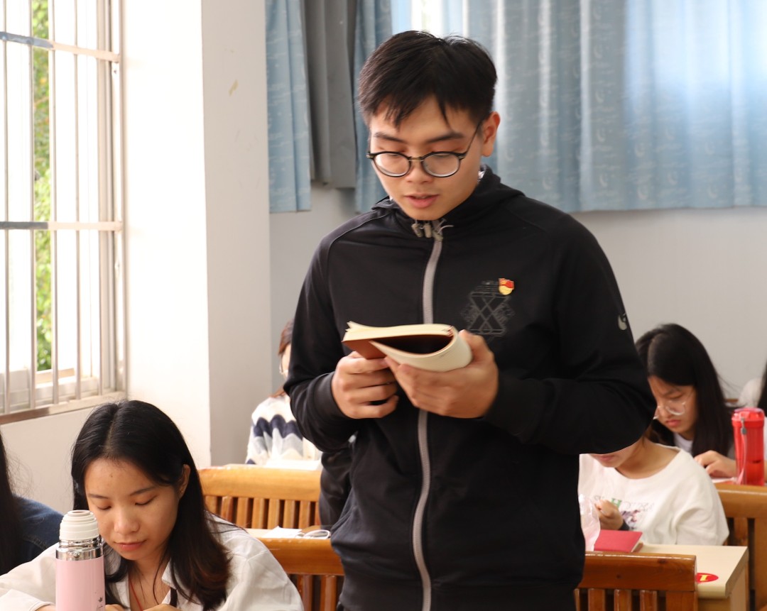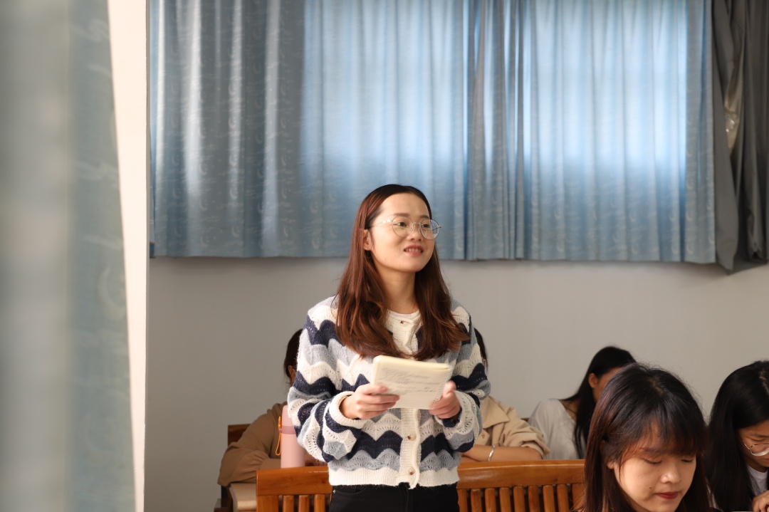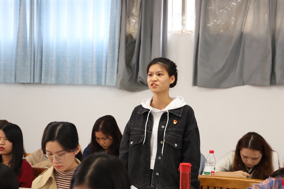 其中,韦宏兰同志分享了她在本次党课培训中得到的收获,她说道:作为新时代青年,我们要有责任与担当意识,要主动作为,在社会服务以及校园各项活动中挥洒自己的青春热血。同时,作为一名预备党员,要懂得纪律的严肃性,全心全意的为社会、为广大师生服务,不断为社会发展注入新的力量。接着,谭月老师列出五个问题让同志们分为两个小组进行讨论总结,每一组的党员同志都积极的参与讨论,最后小组派代表发言讨论结果。