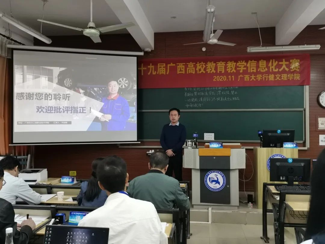 2020年11月13日至15日第十九届广西高校教育教学信息化大赛决赛在广西大学行健文理学院举行,来自全区72所高校的632个作品参加了本次决赛。我院邓剑锋、郭淑芬教师作品《车辆防护、发动机舱检查》获得三等奖。