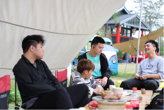 参观结束后,师生共同围坐在美丽舒适的草坪帐篷下,在和谐安宁的环境下进行了一场亲切的畅谈交流,大家一边喝茶、品尝当地特色美食,一边分享自己的心得和感受,有说有笑,其乐融融。