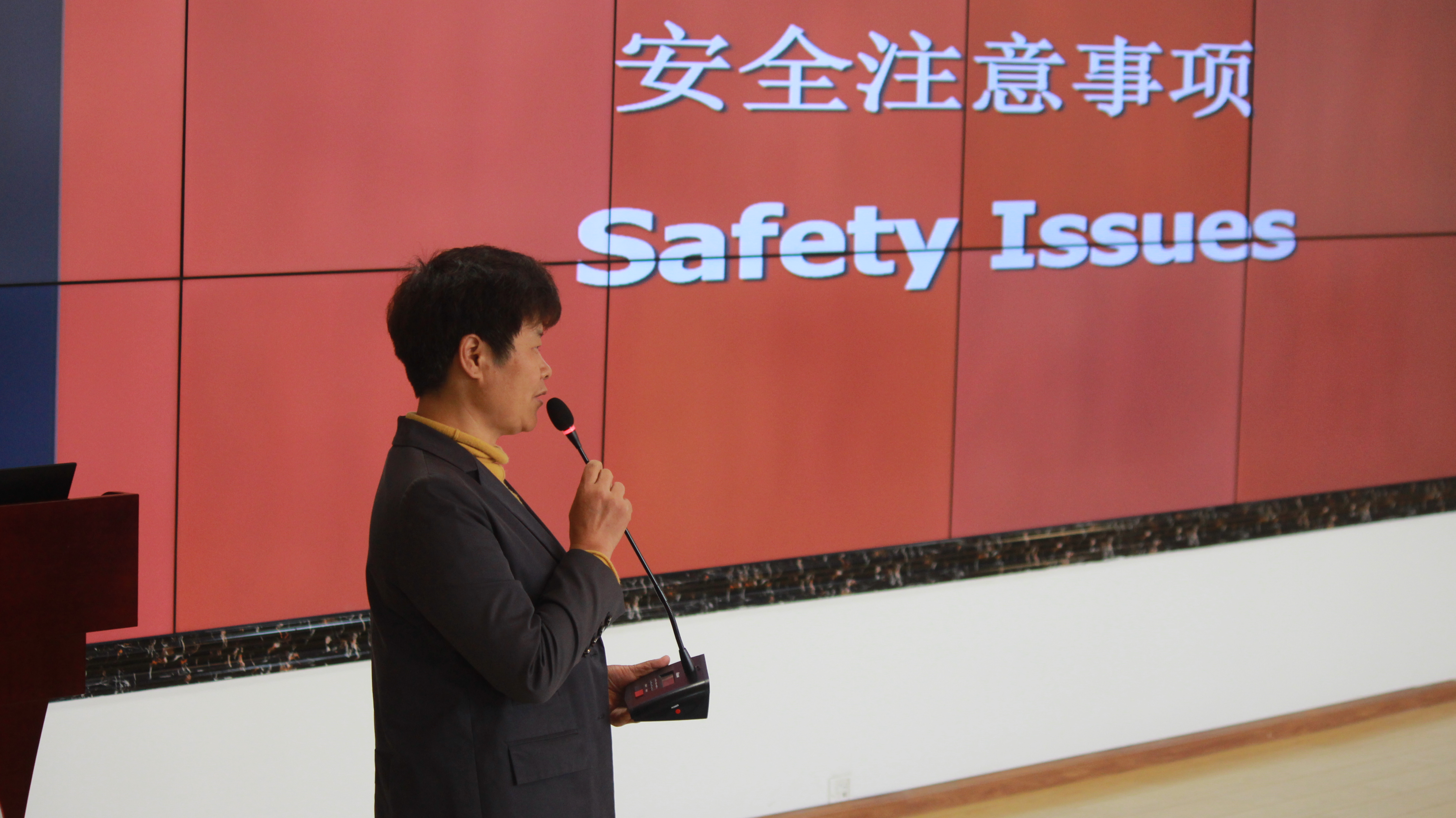 国际教育学院党委副书记甘孝琴宣讲校内安全问题。她从疫情防控、消防安全及个人信息安全等方面向留学生强调了相关要求和注意事项。