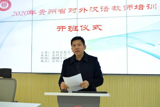 为做好新时期教育对外开放工作,进一步提升我省教育对外开放水平,提高对外汉语教学质量,促进来华留学生项目院校间经验交流,11月27日至29日,由省教育厅主办、贵州大学承办的“2020年贵州省对外汉语教师培训”我校顺利举行。省教育厅党组成员、省教育工会主席王慧,我校副校长陈祥盛出席开班仪式,全体学员参加。