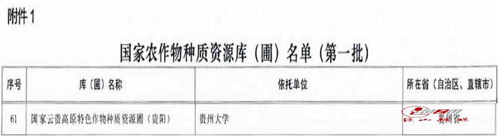 贵大新闻网讯(通讯员 潘学军) 近日,根据《中华人民共和国农业农村部公告(第595号)》,在贵州省农业农村厅的大力支持下,由贵州大学申报的“国家云贵高原特色作物种质资源圃(贵阳)”被农业农村部确定为第一批国家农作物种质资源圃,实现了贵州省国家农作物种质资源圃零的突破。