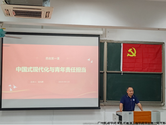 4月11日下午,低空学院党委书记温兆麟在教学楼110为学院党课培训班同学讲授了 2025 年春季学期“思政第一课”。本次课程以“中国式现代化与青年责任担当”为主题,旨在引导青年学子深刻理解中国式现代化的内涵,明确自身肩负的时代责任。