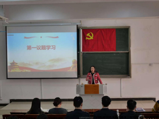 第一议题学习环节,贾小爽领学习近平总书记在广东考察时的重要讲话精神,她强调结合学院专业特色与青年成长实际,将理论学习转化为推动学业科研、服务师生的实际行动,在纵深推进全面从严治党的进程中,彰显青年党员的责任担当。