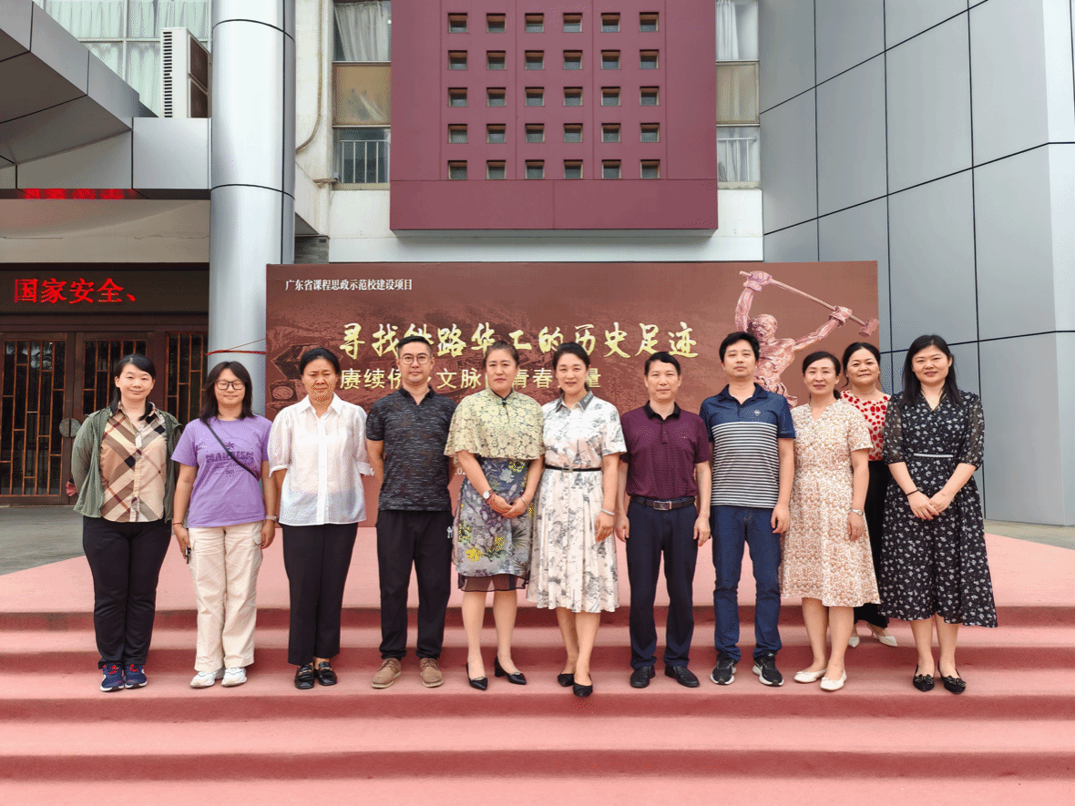 丁西泠院长对来访一行表示热烈欢迎,立足“党建引领思政课程与课程思政互促共赢”建设模式和“一主四辅六协同”的思政课实践教学创新模式,详细介绍了我校马克思主义学院以“深入学习马克思主义理论”为主线,打造“思政+心理教育”“思政+课岗融合”“思政+文化传承”“思政+网络传播”四大品牌,“政校行企馆团”六主体协同的凸显高职类型教育开放性和适应性特色的思政课实践教学经验,同时介绍了党支部建设经验。双方教师就《军事理论》《形势与政策》《党史》等课程进行了经验交流。随后丁西泠院长带领广东松山职业技术学院一行先后参观了院士长廊、“寻找铁路华工的历史足迹”展览、广府婚俗文化展等教学实践项目。