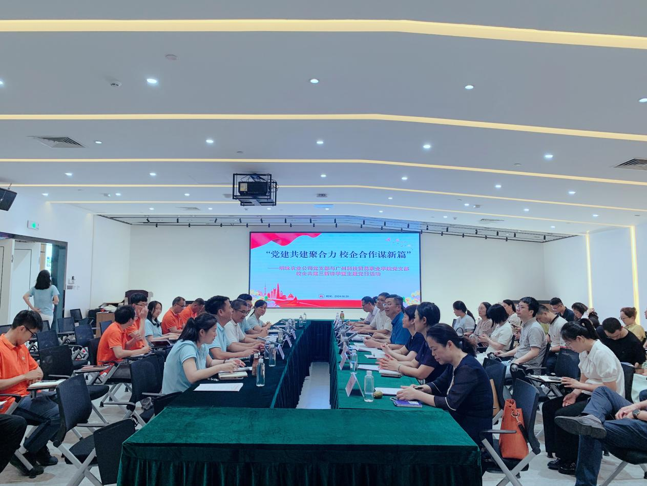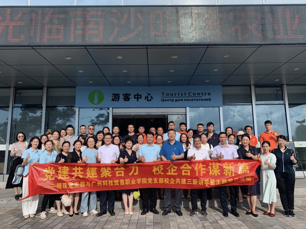 为进一步深化校企合作,推进校企党建工作融合共进,依托区域特色,提升应用创新性人才培养质量。6月20日下午,马克思主义学院党支部联合行政教辅第二党支部、生物健康学院党支部、商贸学院党总支与广州南沙明珠农业发展有限公司党支部开展共建三新讲学暨“党建共建聚合力 校企合作谋新篇”主题党日活动。马克思主义学院党支部、行政教辅第二党支部、生物技术与健康学院党总支、商贸学院党总支和广州南沙明珠农业发展有限公司党支部全体党员参加。学校党委副书记、校长蒋新革教授以普通党员身份参加,党委副书记覃昆应邀参加。