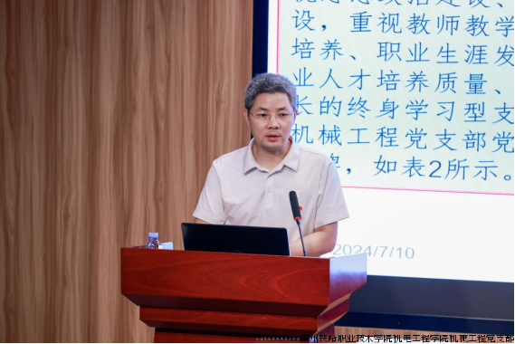 张竹筠首先对机械工程党支部入选教育部第四批全国党建工作样板支部培育创建单位表示祝贺,这是机电学院又一项国家级重量级标志性成果。张竹筠强调,支部建设的根本依据是《中国共产党章程》,要求广大党员加强章程学习;二是机电工程学院全体教职工尤其是共产党员要对标争先,努力登攀,在重大任务中树榜样;三是加强支部战斗堡垒建设,增强凝聚力和战斗力;四是对照全国党建工作样板支部申报方案,保质保量完成建设任务,在新一轮双高建设中找到自己的位置,为学校高质量发展做出新的贡献。
