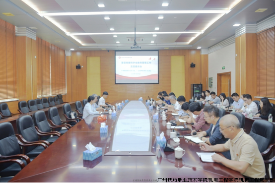 广州对口帮扶梅州指挥部副指挥长、梅州高新区(广梅产业园)管委会主任谢海佳,广梅指挥部办公室主任李世军等10余名领导,以及广东梅州职业技术学院临时党委书记董芳远、总督导桑炳巨、副校长林文明等学校领导及部门负责人等20余人出席座谈会。会上,谢海佳代表广梅指挥部对广州铁职院一行的到来表示热烈欢迎,同时介绍了广梅产业园建设发展的情况和未来发展规划。董芳远介绍了梅职院参与座谈人员情况,林文明介绍了梅职院办学情况及园区产业学院建设规则基本情况等。王超和徐小锋等领导分别介绍了我校的办学情况,就广梅产业园共建产业学院、人才培养、办学水平提升、人才协调发展、科研成果转化等对口帮扶事项提供了建设意见。会上,举行我校教师与梅职院结对签约仪式,我校信息工程学院江跃龙与梅职院陈利萍二位老师代表两校结对教师发言。在产业学院建设三方研讨交流阶段,三方还就学生实习就业、订单培养、科技研发、技能培训等方面进行了深入交流。三方均表示,通过共建现代产业学院等载体,充分发挥各自的资源优势,将共同致力于服务广州市对口帮扶梅州市助推老区苏区全面振兴发展规划,共同推进产教融合、校企合作,为梅州经济发展提供人才与智力支撑。