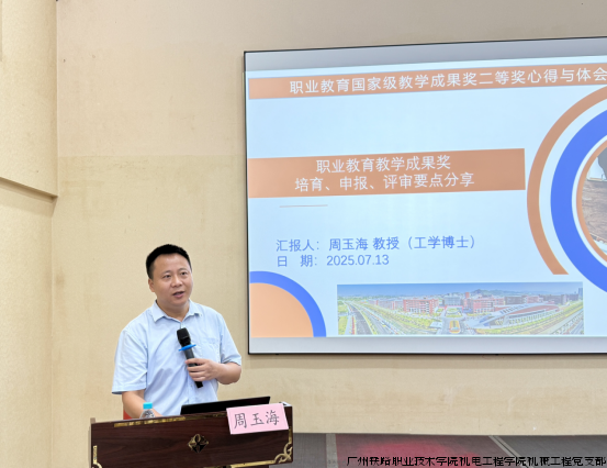 广州铁路职业技术学院机械工程党支部书记周玉海教授受邀于2025年7月13日在广东省社会主义学院为“教师产教融合成果转化与社会服务能力提升研修班”(国培)授课《产教融合成果孵化:产教融合案例撰写和打磨》、《打造职教精品:教学成果奖培育与申报实战》。