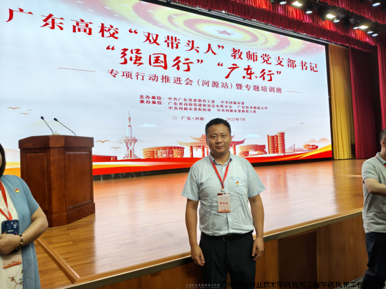 7月15日,广东高校“双带头人”教师党支部书记“强国行”“广东行”专项行动推进会(河源站)暨专题培训班在东源县“百千万工程”人才干部培训基地顺利召开。机械工程党支部书记周玉海代表学校参加本次活动。
