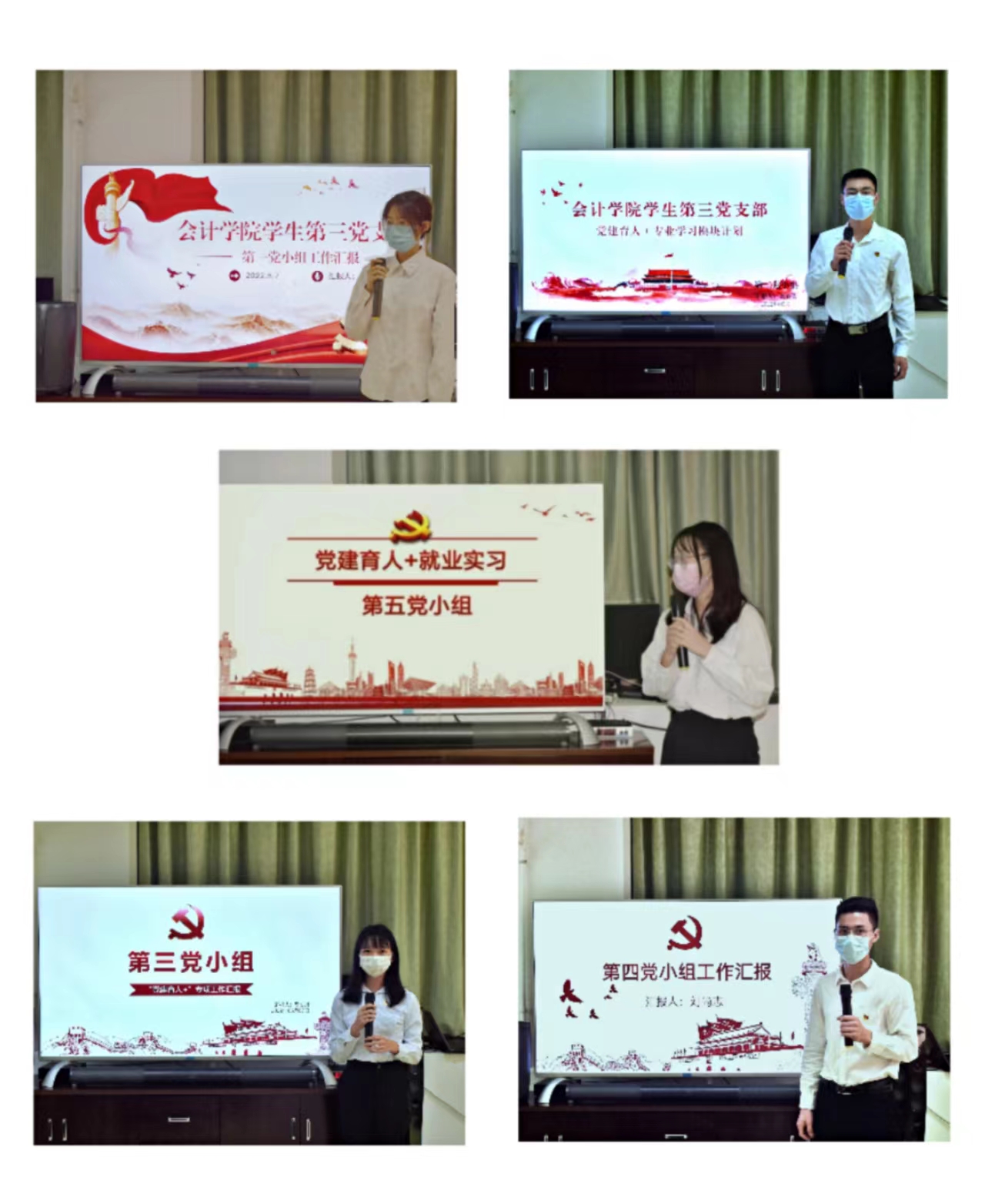 活动伊始,会计学院学生第三党支部书记邓楚云老师介绍了活动的主要内容。本次党日活动的主要内容为围绕全国样板党支部建设,各党小组负责人分别对样板党支部七项“党建育人+”专项工作做述职报告。