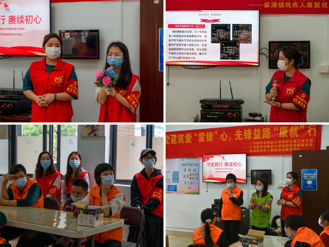 为进一步发挥教育部第三批全国党建工作样板支部的示范引领作用,深入推进“党建育人+青春公益”模块专项工作,培养新时代学生党员的责任担当意识,树立师生关爱残障人士的校内风气,积极参与关心、爱护残障人士的校外公益,会计学院学生第三党支部于2023年3月10日联合麻涌镇残疾人康复就业服务中心开展了以“党建筑爱‘雷锋’心,先锋益路‘康就’行”为主题的志愿服务。
