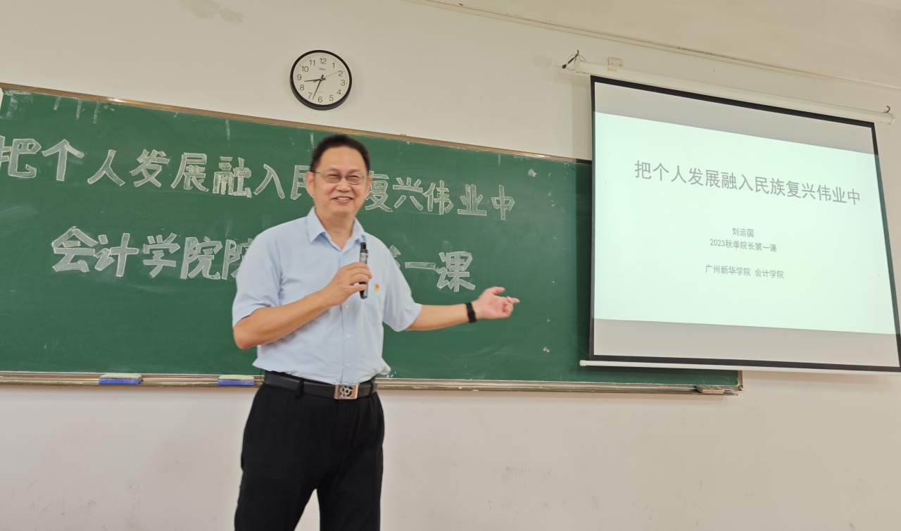 为深入学习贯彻党的二十大精神,推进广州新华学院会计学院高质量发展,筑牢学生思想根基,引领学生坚定理想信念,培养担当民族复兴大任的时代新人。会计学院刘运国院长于2023年9月28日上午在格物楼1C203开展以“把个人发展融入民族复兴伟业中”为主题的院长思政第一课。