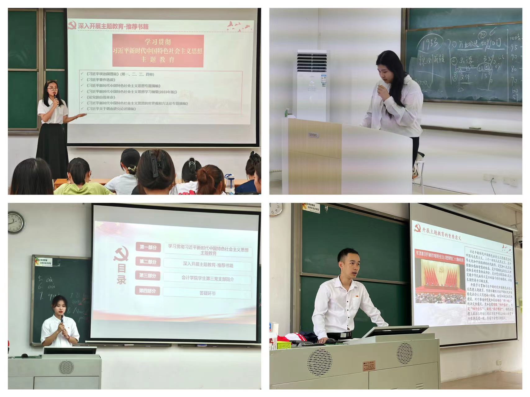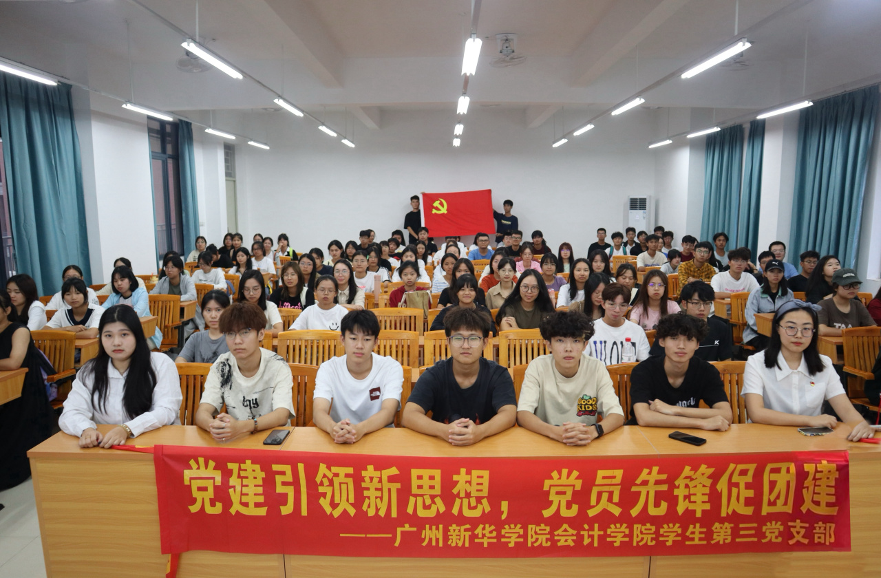 会计学院学生第三党支部于2023年10月开展以“党建引领新思想,党员先锋促团建”为主题的党的知识教育班会。